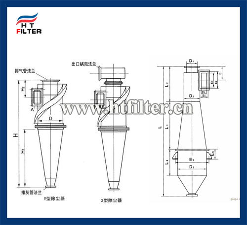 含塵氣流經(jīng)收縮形進口切向進入除塵器蝸殼時,由上向下作螺旋形旋轉(zhuǎn)運動,塵粒在離心力的作用下被拋向器壁,并沿器壁下旋,進入特殊結(jié)構(gòu)的密封收塵裝置內(nèi);凈化后的氣體由下向上作內(nèi)螺旋形旋轉(zhuǎn)經(jīng)芯管排出。除塵器的單體都有有四部分:本體、蝸殼、 芯管和具有性能良好的密封收塵裝置。
