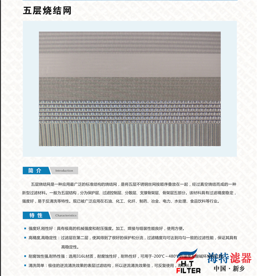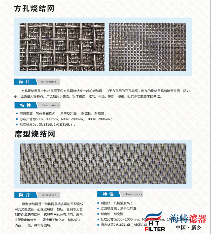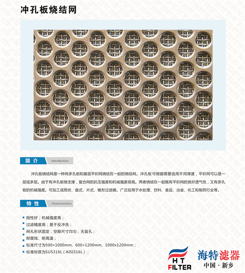 1)標(biāo)準(zhǔn)材質(zhì):SUS304、SUS316L;SUS沖孔板燒結(jié)網(wǎng);