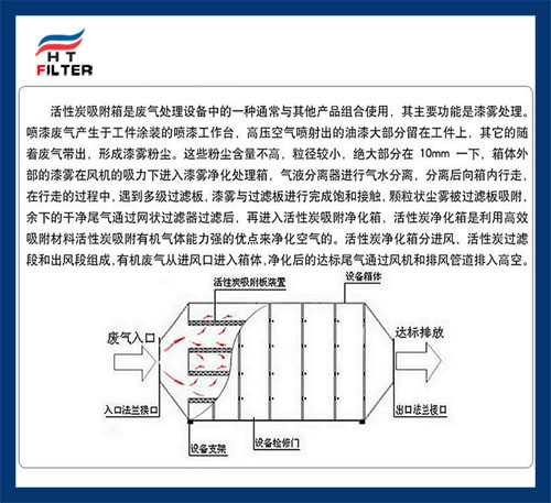 有機(jī)廢氣氣體由風(fēng)機(jī)提供動(dòng)力,正壓或負(fù)壓進(jìn)入活性炭吸附箱內(nèi),由于活性炭固體表面上存在著未平衡和未飽和的分子引力或化學(xué)健力,因此當(dāng)此固體表面與氣體接觸時(shí),就能吸引氣體分子,使其濃聚并保持在固體表面,污染物質(zhì)從而被吸附,廢氣經(jīng)過濾器后,進(jìn)入設(shè)備排塵系統(tǒng),凈化氣體高空達(dá)標(biāo)排放。