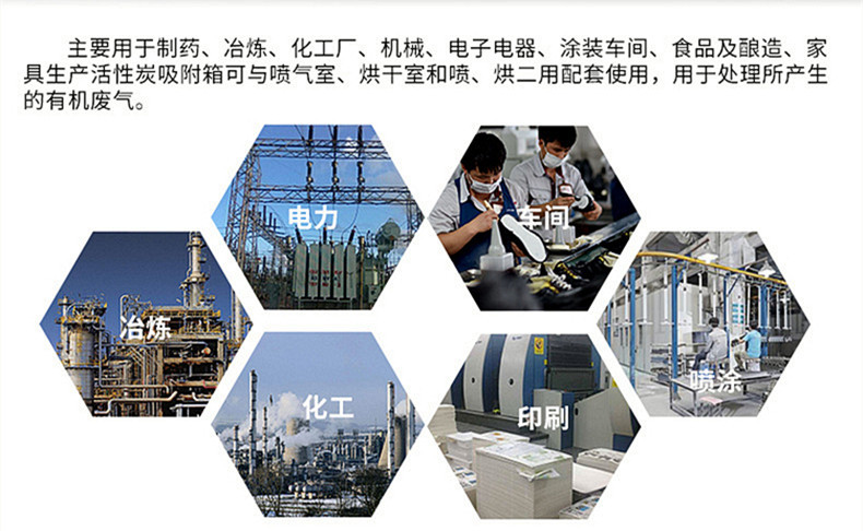 石化行業(yè)生產(chǎn)、天然氣凈化、脫硫、除臭、廢水的治理.生化、油漆工業(yè)、地下場(chǎng)所、皮革工廠、動(dòng)物飼養(yǎng)場(chǎng)所的空氣凈化、脫臭.煙道氣的臭氣吸附,硫化物吸附,汞蒸汽的去除、降低戴奧辛的生成