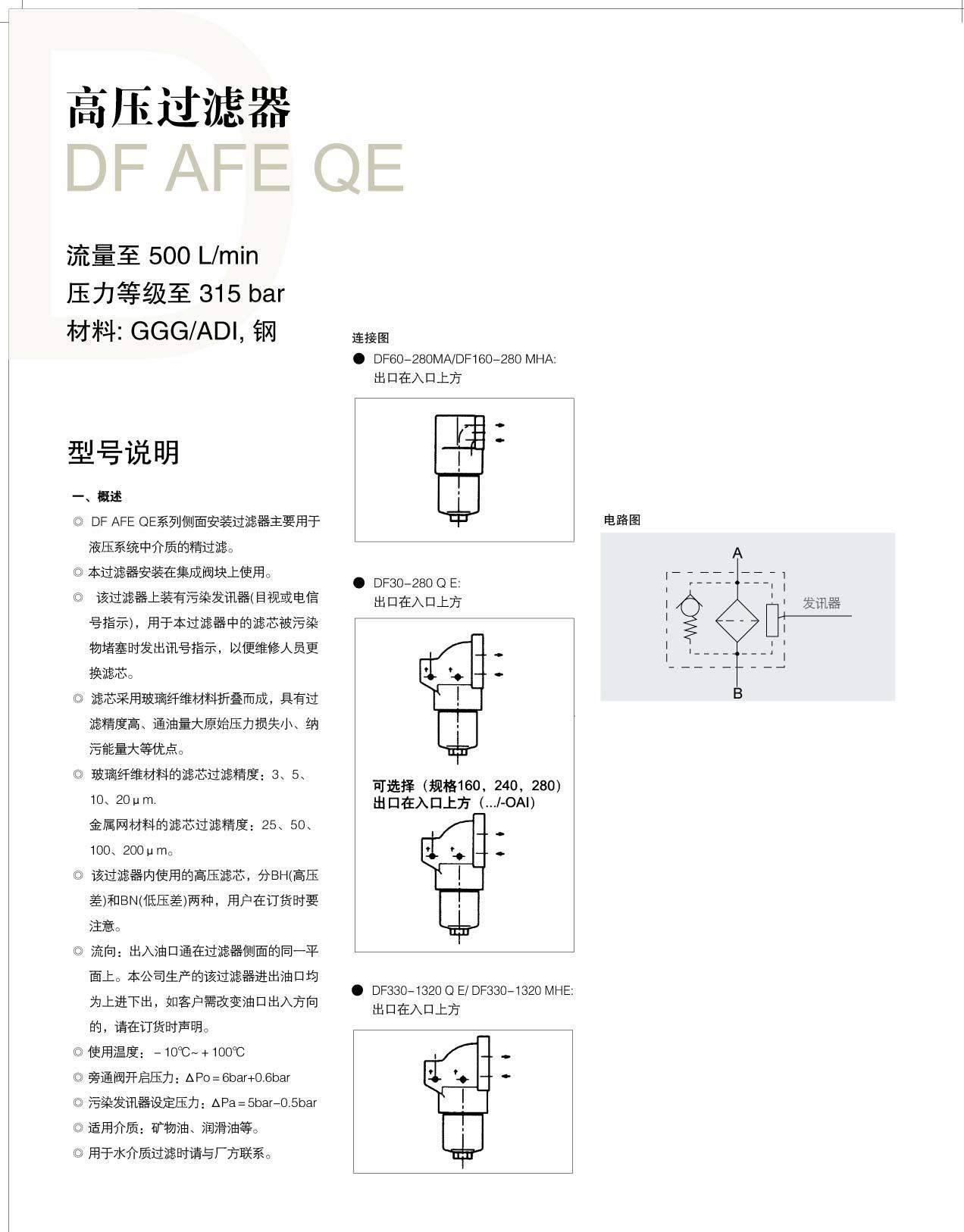 DF AFE QE系列側(cè)面安裝高壓過濾器主要用于液壓系統(tǒng)中的精過濾!國產(chǎn)賀德克過濾器,非原廠產(chǎn)品,需要原廠產(chǎn)品請(qǐng)聯(lián)系賀德克代理經(jīng)銷商!