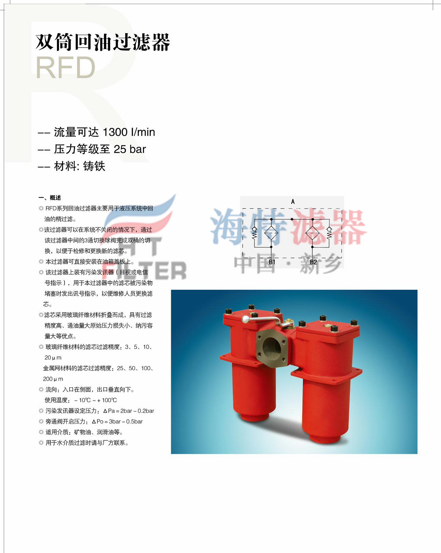 RFD系列雙筒回油過(guò)濾器|國(guó)產(chǎn)賀德克過(guò)濾器