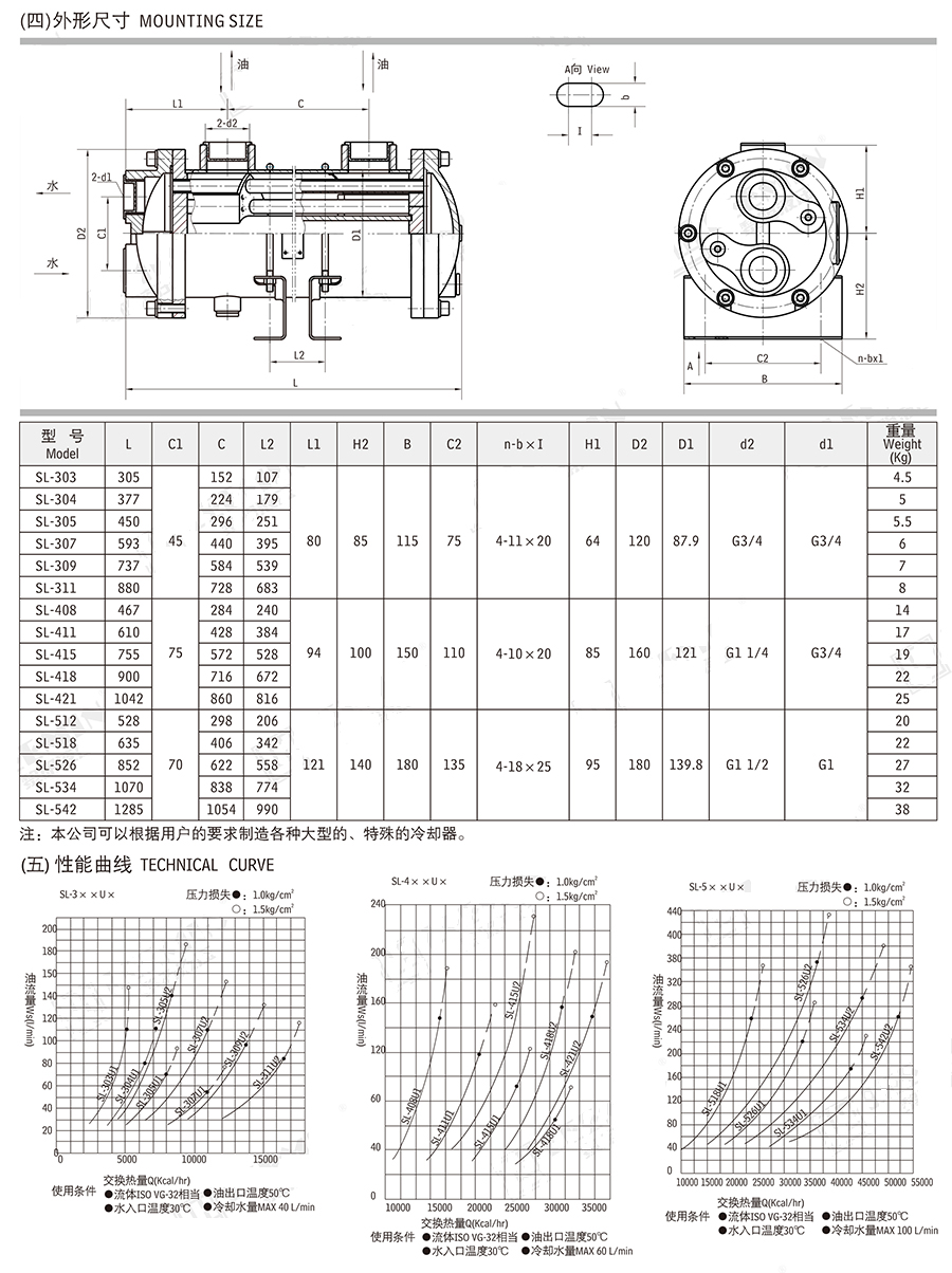 SL系列旋流式油冷卻器外型尺寸: