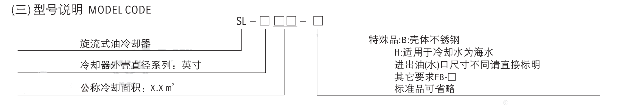 SL系列旋流式油冷卻器型號(hào)說(shuō)明: