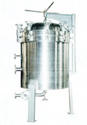 該過濾機(jī)是在密閉筒內(nèi),有若干片水平放置的濾板中間裝夾濾紙組成。它是依靠濾紙作過濾介質(zhì),在密閉容器內(nèi)進(jìn)行加壓過濾。過濾時(shí),濾葉由輸送泵送入過濾機(jī)體內(nèi),沿著濾板外圓周上的小孔進(jìn)入兩層濾板間,濾液穿過濾紙和多孔支撐板,流入濾板中心孔道,從機(jī)體底部出料口流出,過濾完后,用壓縮空氣將過濾機(jī)內(nèi)殘液壓出。