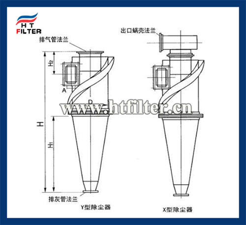 旋風(fēng)除塵器為立式氣旋型離心式除塵器 ,該過濾器用來清除含水份不超過 4% 的非纖維性粉塵 , 適用于冶煉、鑄造、噴砂、化工、建筑材料及耐火材料等行業(yè)。根據(jù)在通風(fēng)系統(tǒng)中的安裝位置不同分為 Y 型和 X 型。Y 型為壓入式(即除塵器安裝在通風(fēng)機(jī)之后)。X 型為吸入型(即除塵器安裝在通風(fēng)機(jī)之前)。為考慮使用中連接上的方便,又于 Y 型和 X 型中各設(shè)計(jì)有 N型及 S 型,N 型的進(jìn)入氣流按逆時(shí)針方向旋轉(zhuǎn),S 型的進(jìn)入氣流按順時(shí)針方向旋轉(zhuǎn)。旋風(fēng)除塵器的結(jié)構(gòu)除單筒外,還有雙筒、三筒、六筒、八筒等幾種形式。